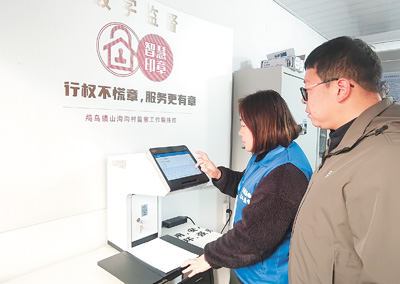 余杭区鸬鸟镇山沟沟村监察工作联络站工作人员在操作智慧印章。 |