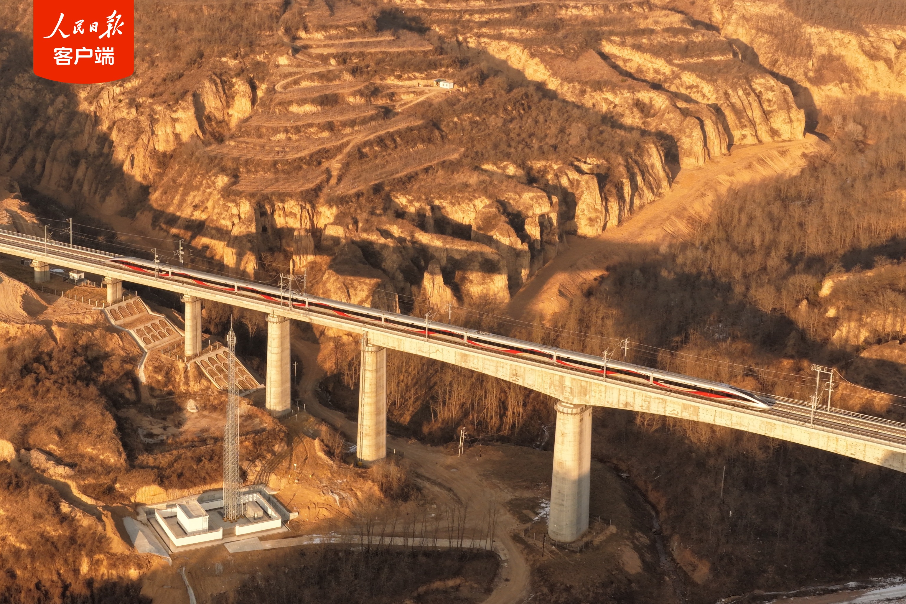 12月26日,西安至延安高铁(以下简称西延高铁)开通运营,陕北革命老区迈入高铁时代。(人民日报记者 雷声 摄)