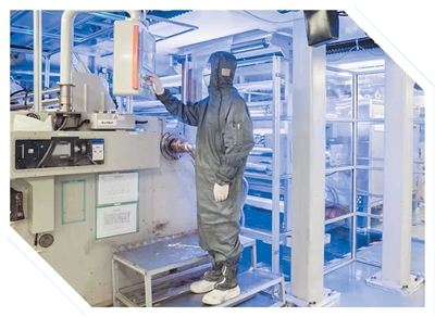 在凯鑫森位于上海金山区的工厂里,作业员正在进行液晶显示用光学膜产品生产。 |