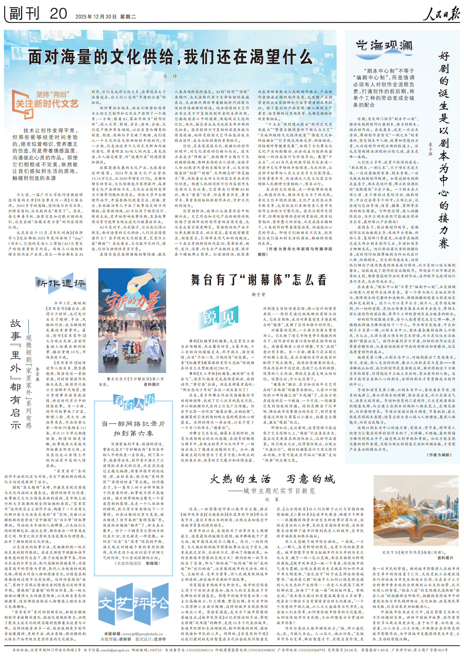 好的创作就像接力赛,每个人高质量完成自己那一棒,并稳稳地将接力棒传递给下一个人。作为项目发起者,平台和制片方是第一棒,以剧本为中心,意味着在题材选择上不跟风、不从众,从源头建立项目的艺术价值,而不是仅仅关注数据和“爆款公式”。创作和盈利并不矛盾,但好的创作永远是带着前瞻性的,从最前端就保护作品的创新性和前瞻性,这是高质量创作的基石。