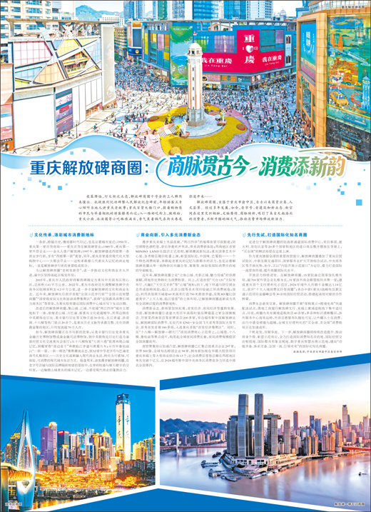 漫步重庆来福士水晶连廊,“两江四岸”的璀璨夜景尽收眼底;防空洞特色酒吧里,音乐伴着欢声笑语,带来消费新体验;西南地区首家MINISO LAND乐园店正式亮相,解锁潮流新玩法;重庆国泰艺术中心里,各类精品剧目轮番上演,彰显国际范、中国味、巴蜀韵……一个个特色消费场景,串联起老重庆的记忆与新都市的活力,也见证着解放碑商圈从单一购物街区向融合型、策展型、体验型国际消费目的地的华丽蜕变。