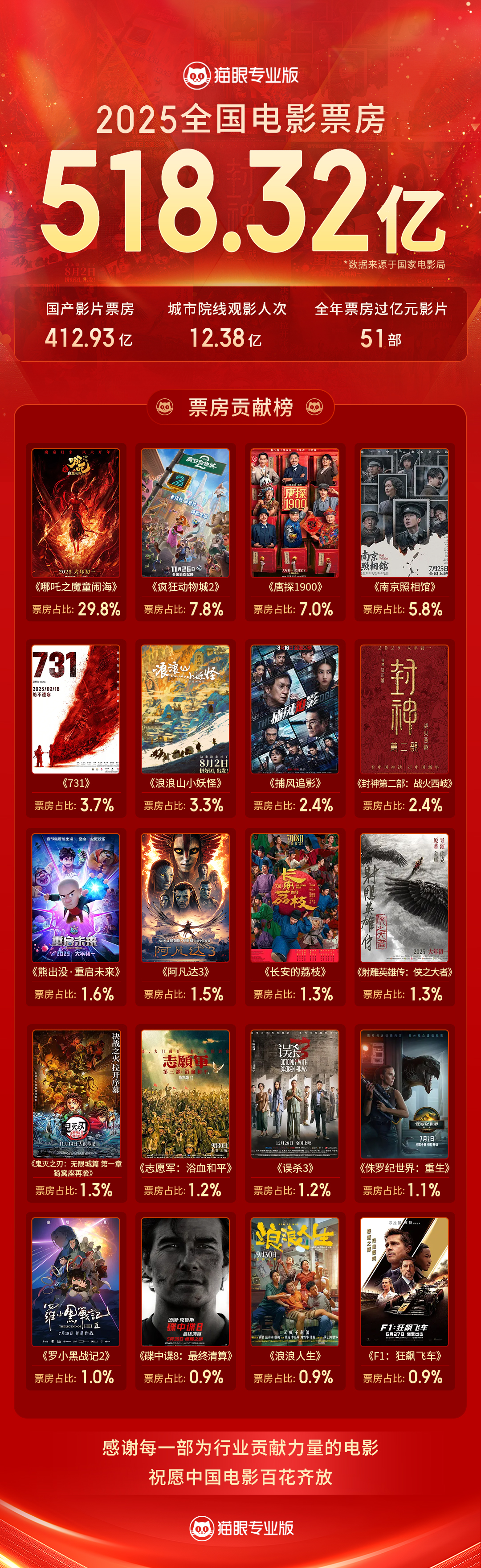 2025年全国电影总票房518.32亿元
