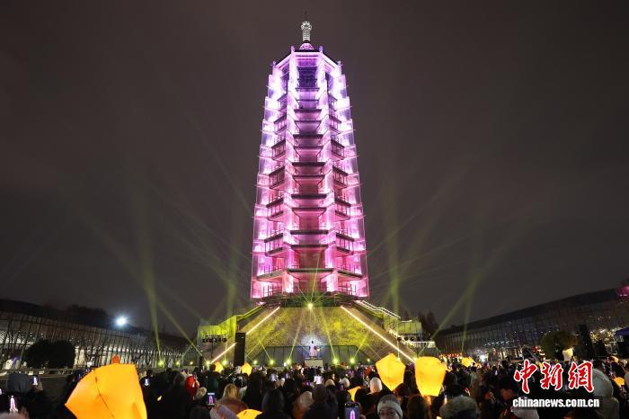 在大报恩寺遗址景区,新年限定塔灯准时开启,代表新一年的活力与希望。当晚,大报恩塔首次对公众开放夜间登塔,游客不仅能登高俯瞰金陵城的璀璨夜景,更能在“一层一愿、步步高升”的登塔之旅中,解锁专属新年祝福,收获探索与喜悦。