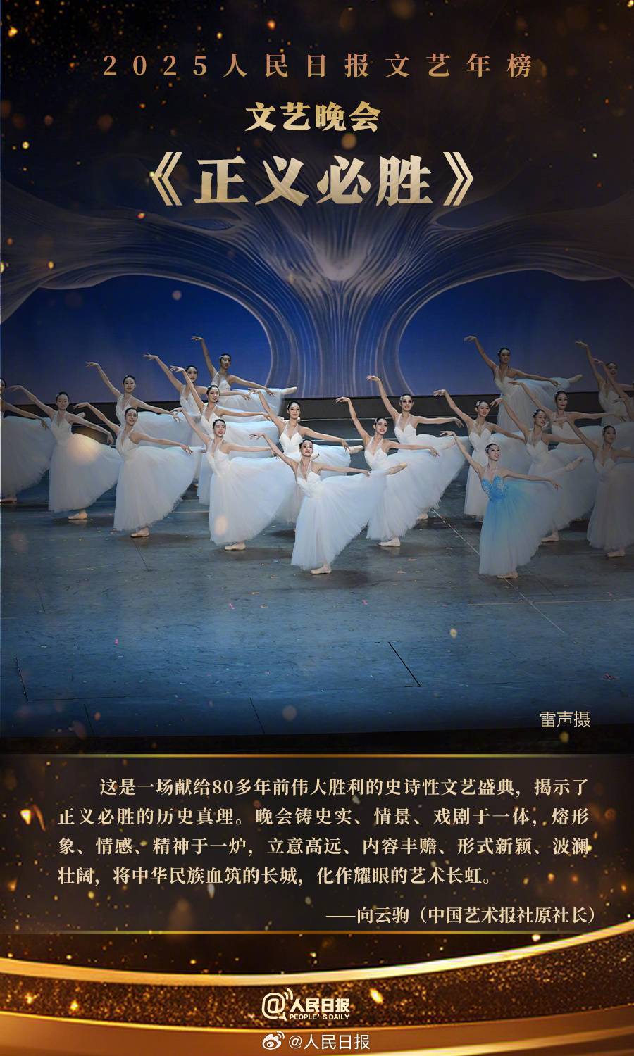 这是一场献给80多年前伟大胜利的史诗性文艺盛典,揭示了正义必胜的历史真理。晚会铸史实、情景、戏剧于一体,熔形象、情感、精神于一炉,立意高远、内容丰赡、形式新颖、波澜壮阔,将中华民族血筑的长城,化作耀眼的艺术长虹。