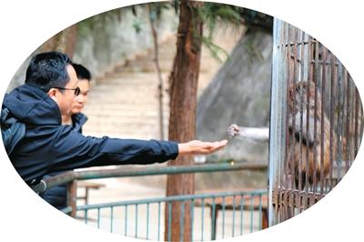 游客与猴子互动。雷子德摄