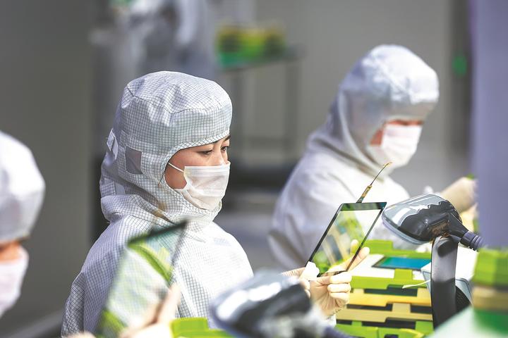 安徽威灏光电有限公司无尘车间里,工作人员在检查产品。(资料图片)