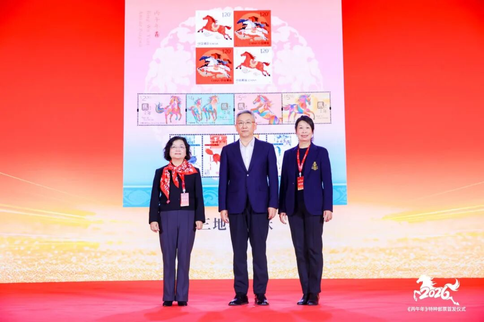 活动当天,中国邮政携手港、澳邮政部门共同印制的生肖同题材邮票三地小全张同步揭幕。全国政协常委、副秘书长,民盟中央副主席吴为山为中国邮政设计的《丙午年生肖纪念章》以及中国邮政集邮、文创、银行、保险、寄递等各板块马年生肖图案系列产品同时发布。