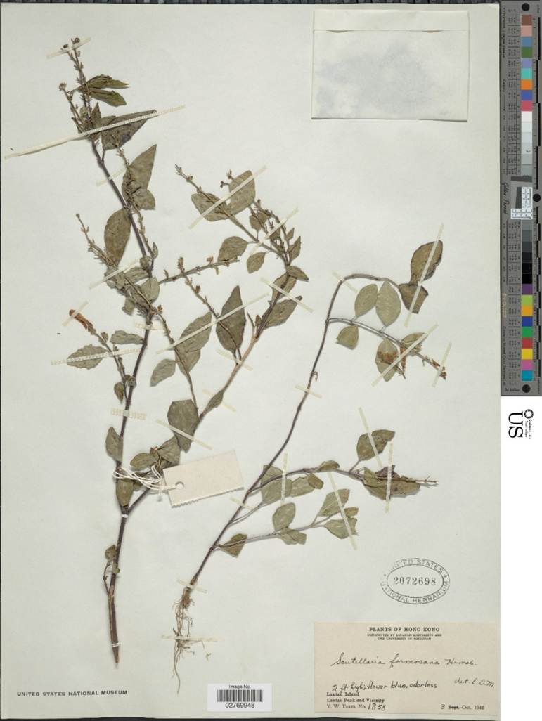 图为狭管黄芩的主模式标本(示茎、叶和花局部)