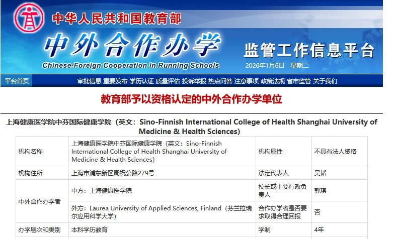 近日,上海健康医学院中芬国际健康学院(以下简称“中芬学院”)正式获教育部批准设立。