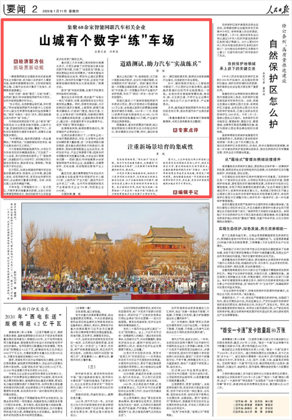 重庆山地丘陵广布,急弯陡坡、交叉路口等复杂路况较多,适合作为辅助驾驶、自动驾驶技术的“练兵场”。西部(重庆)科学城一方面整合道路资源,让技术在“真刀真枪”中完善;另一方面整合汽车产业链与产学研资源,形成了“测试—研发—改进”的良性循环。