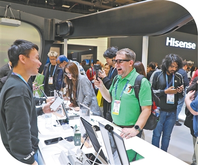 在海信公司展台,加拿大魁北克武士科技公司负责人埃里克·金格拉斯对海信Mini LED电视产品称赞不已:“这样的画质令人惊叹,简直太漂亮了,这正是市场需要的优质电子产品。中企在原创技术方面付出巨大努力,收获了品质与认可。”海信集团副总裁朱书琴表示,海信在海外的发展已走过30年,目前在全球布局了30个研发中心、37个工业园区和生产基地。她说:“20年前,我们到此参展的展位还很小。今天,在整个会场,我们已经成为消费者广泛认可的重要品牌。我们要努力提供更多符合市场需求的好产品。”