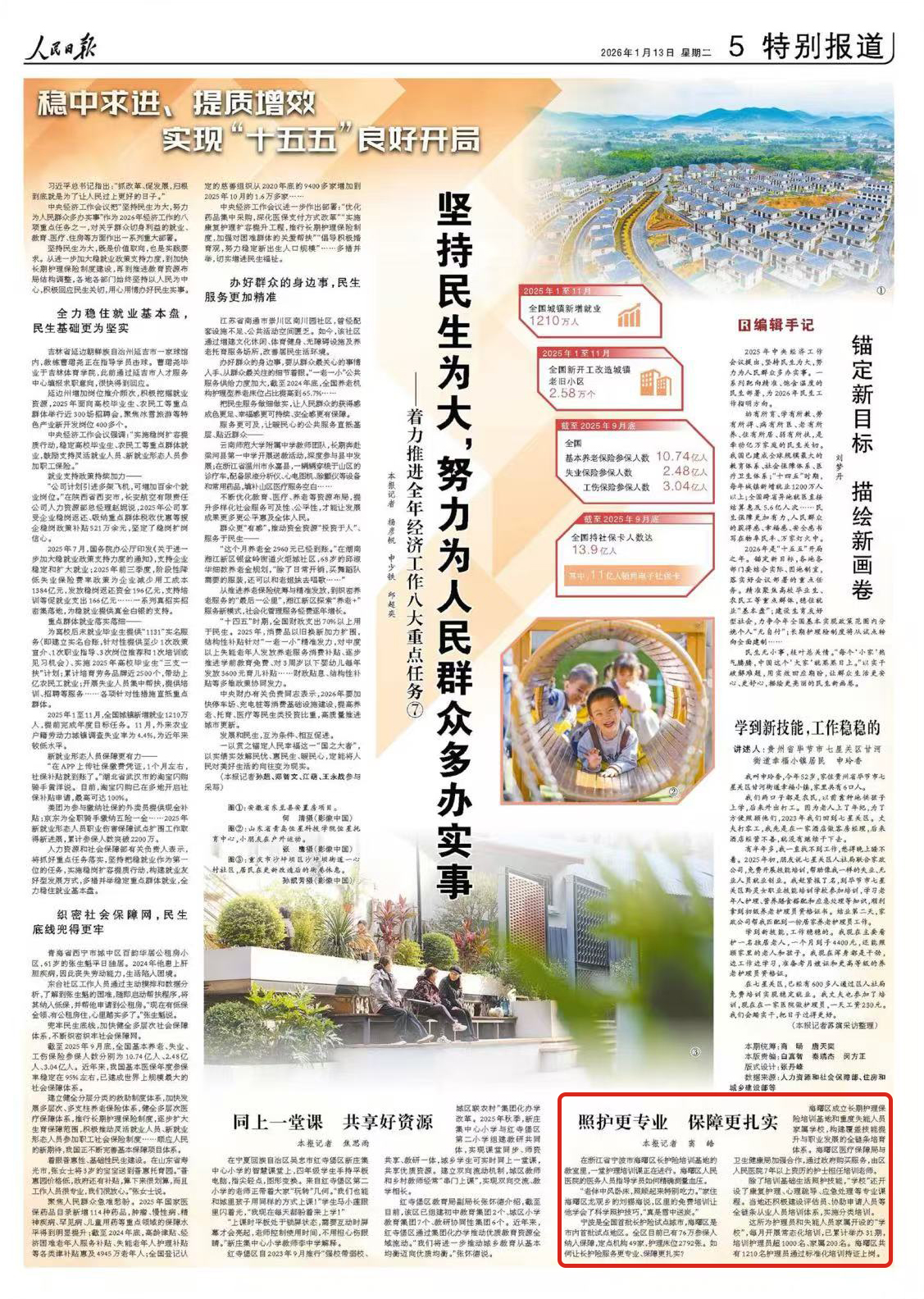 1月13日,《人民日报》5版报道浙江宁波试点长护险培训。原文如下: