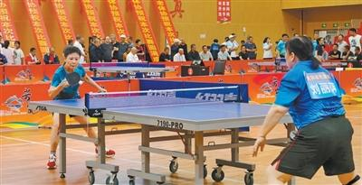 隔壁桌,来自晋城市代表队的温余平正和老朋友对拉弧圈球。连续多届参赛的她步伐很灵活。“各地市的选手水平很高,每次来我都抱着学习的心态。能和大家交流,哪怕输了也有收获。”温余平说。