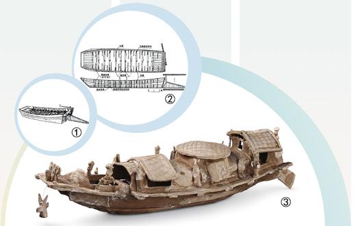 图③:在广州出土的东汉陶船模型,该模型现藏于中国国家博物馆。(资料图片)