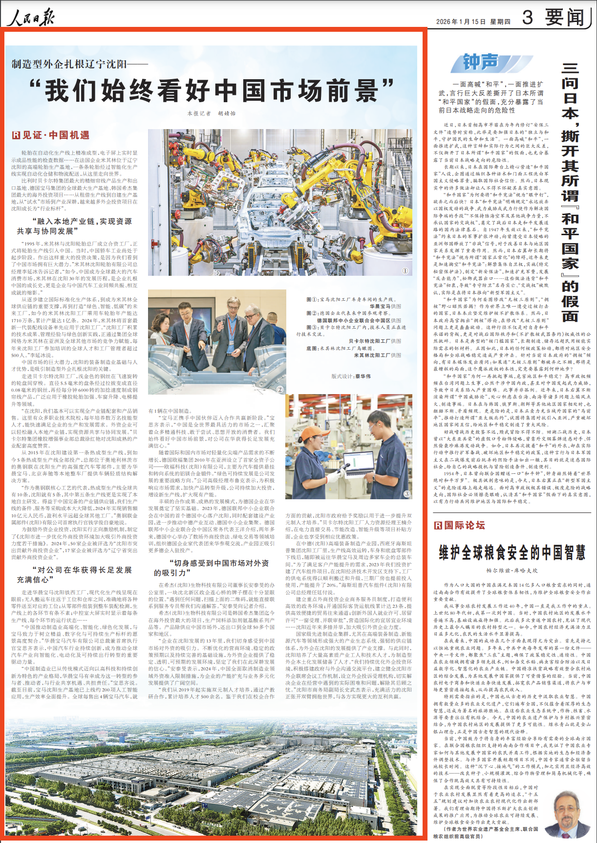 “企业在沈阳发展的13年里,我们切身感受到中国市场对外资的吸引力。不断优化的营商环境、稳定的政策预期以及持续完善的基础设施,为外资企业提供了稳定、透明、可预期的发展环境,坚定了我们在此深耕发展的信心。”安泰旻表示,2024年,中国全面取消制造业领域外资准入限制措施,为企业的产能扩充与业务多元化发展提供了广阔空间。
