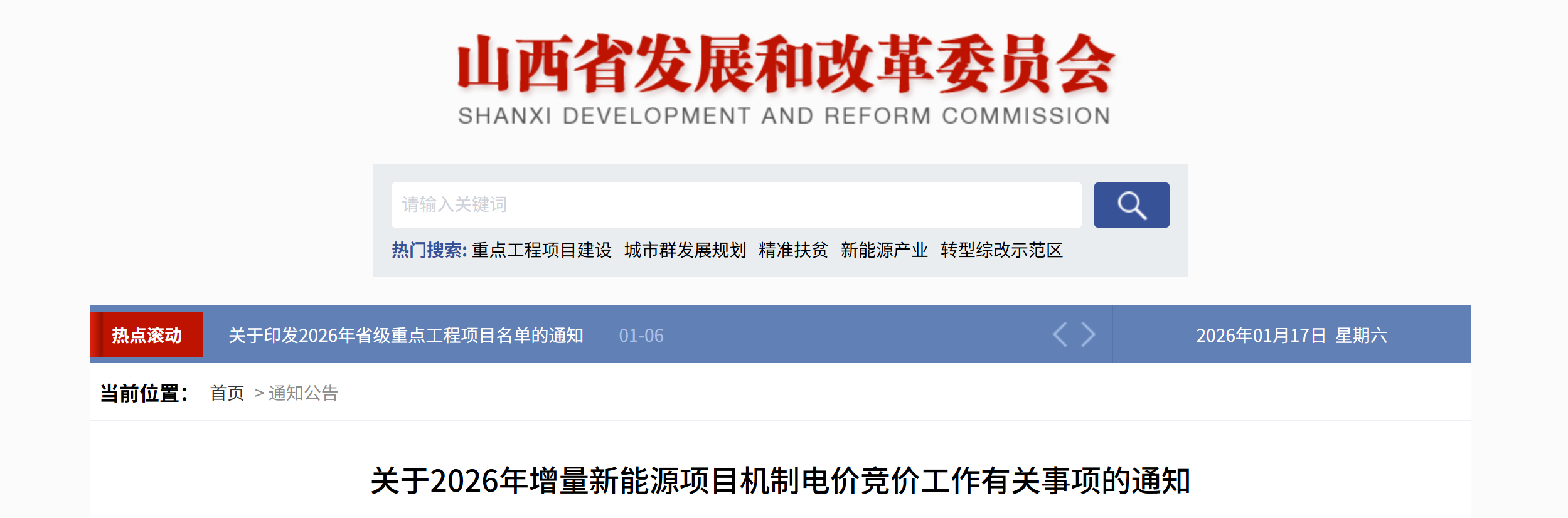 山西部署2026年增量新能源项目机制电价竞价工作