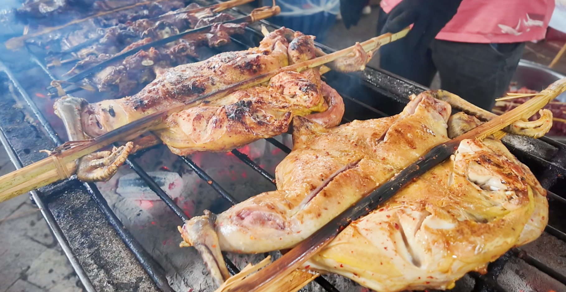 炭火噼啪作响,各式傣家烧烤在铁架上滋滋冒油,香茅草烤鱼、烤鸡等经典美味令人垂涎。