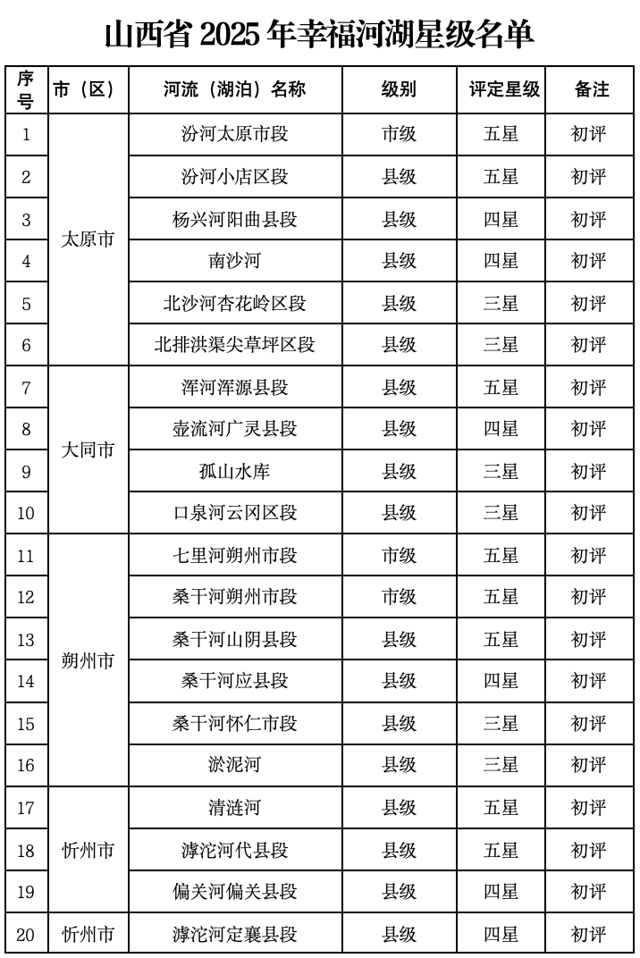 1月16日,山西省水利厅公示2025年省级幸福河湖名单,汾河太原市段等60条(段、个)河湖(库)被初评为2025年省级幸福河湖。