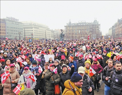 1月17日,丹麦本土与格陵兰岛多地举行示威游行,抗议美国企图“控制”或“购买”格陵兰岛。据统计,超过2万名丹麦民众在首都哥本哈根集会,声援格陵兰岛并呼吁尊重其自决权。在格陵兰岛,上千名民众在首府努克和其他城镇举行示威游行。游行人群一路高喊“绝不出售格陵兰岛”等口号。