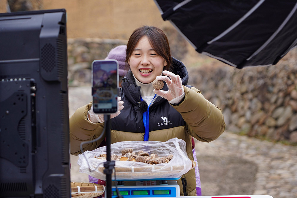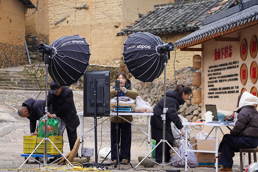 1月21日,在浙江省丽水市云和县石塘镇朱村,白鹤尖共富工坊直播团队依托“流动便民共富车”,现场推介当地特色农产品,直播间订单持续增加,让藏在大山里的“土货”顺利走出深山、成为群众增收的“香饽饽”。