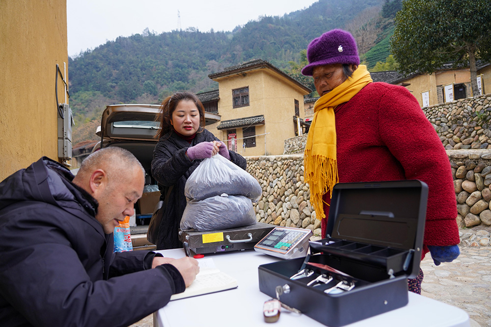 1月21日,“流动便民共富车”现场收购特色农产品。章勇涛摄