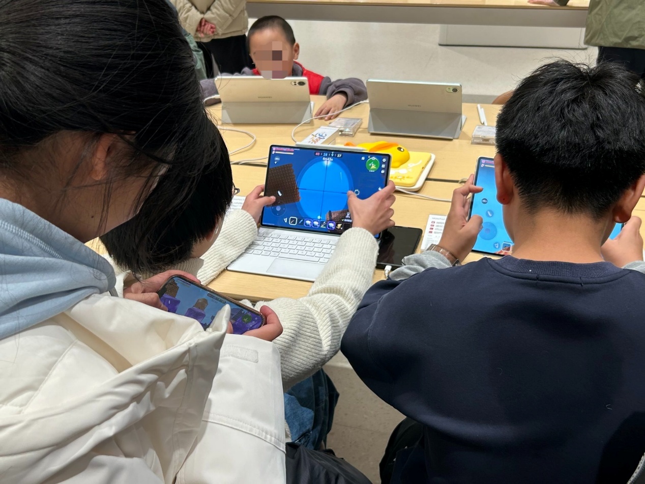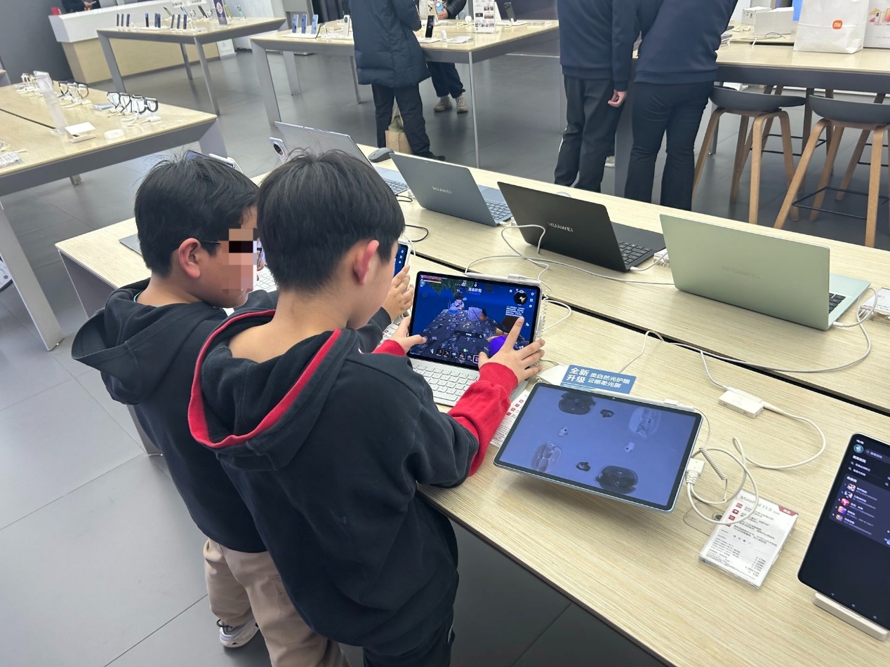 工作日放学时段和周末,手机专卖店里往往会聚集一群学生,把店里的样机当作游戏机,手机店摇身一变成了孩子们的免费“网吧”。对于这种现象,门店一方面说“管不了”,另一方面却偷偷给孩子铺好了玩游戏的路。展示用的样机往往自带“后门”,可以跳过防沉迷限制,孩子们在任何时间来到店里,都能随心所欲畅玩无阻。