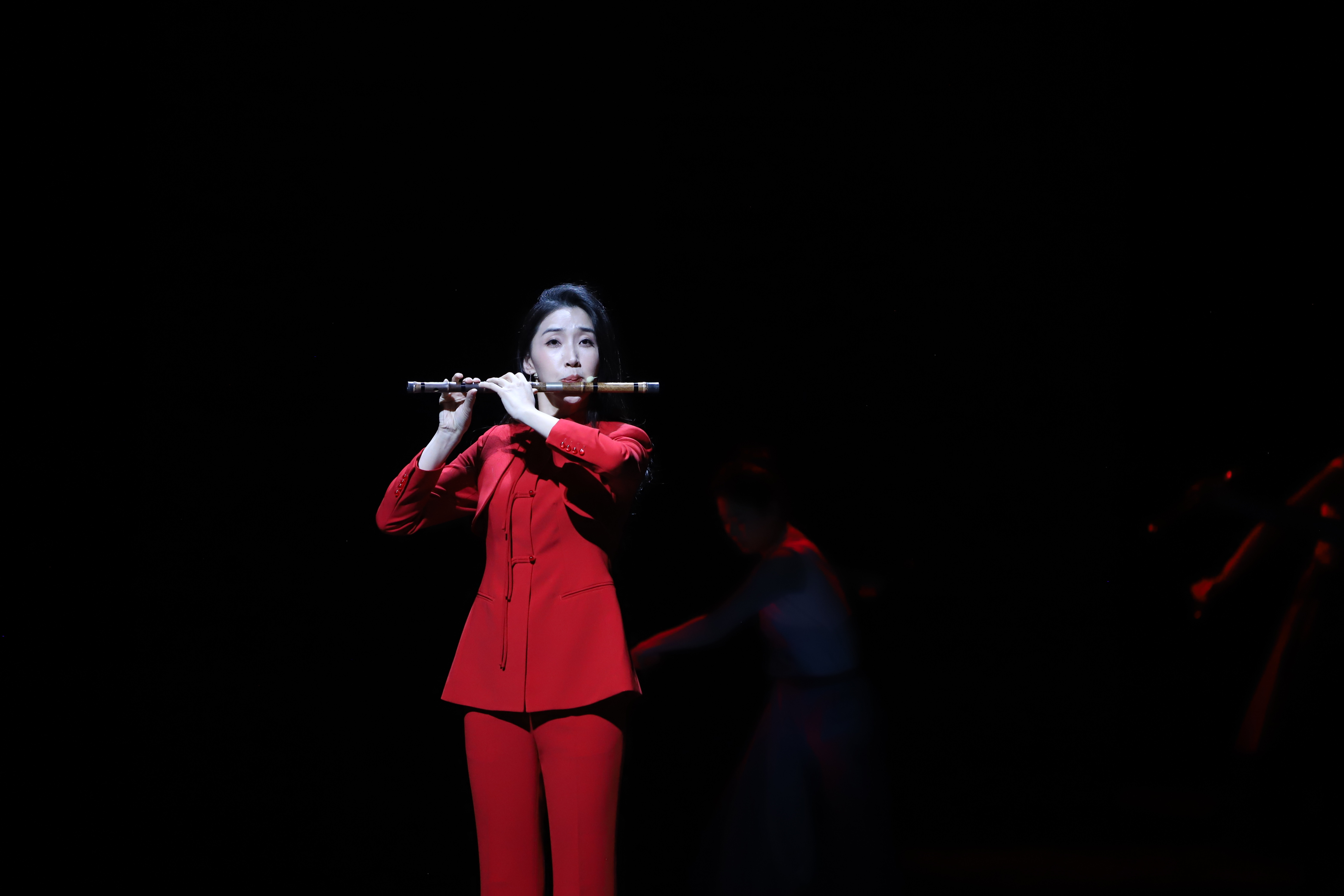 作为晚会的一大亮点,舞蹈《鼓舞前行》在丰台市民春晚舞台上首次亮相,也是专业院团与本土力量深度“联合共创”的典范。中国歌剧舞剧院青年竹笛、排箫演奏家,被观众亲切称为“国民闺女”的孙楚泊倾情献奏。舞台上,孙楚泊的竹笛声清越悠扬,与北京戏曲艺术职业学院舞蹈演员的刚劲舞姿完美融合。这一跨界合作不仅是一场视听盛宴,也是丰台区文化事业“开门办活动”的体现,将国家级的艺术水准与丰台本土的戏曲文化紧密结合,让市民群众近距离感受传统艺术的魅力。
