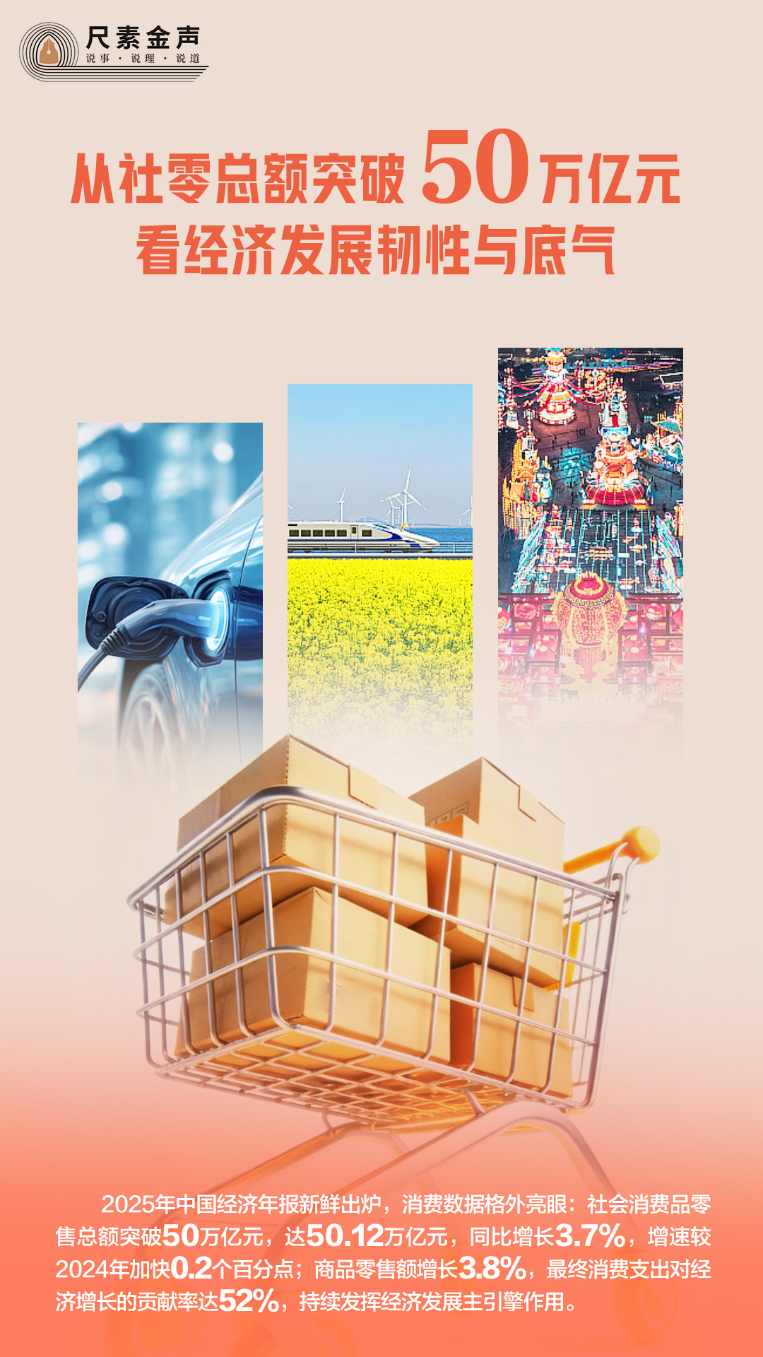 2025年中国经济年报新鲜出炉,消费数据格外亮眼:社会消费品零售总额突破50万亿元,达50.12万亿元,同比增长3.7%,增速较2024年加快0.2个百分点;商品零售额增长3.8%,最终消费支出对经济增长的贡献率达52%,持续发挥经济发展主引擎作用。