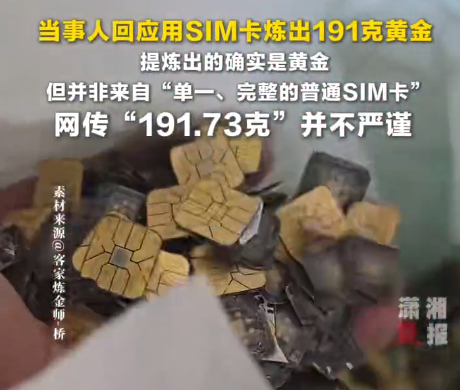 用SIM卡炼出191克黄金,价值21万元?当事人:说法不严谨