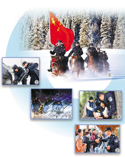 图①:喀纳斯边境派出所民警正在骑马执行巡逻任务。