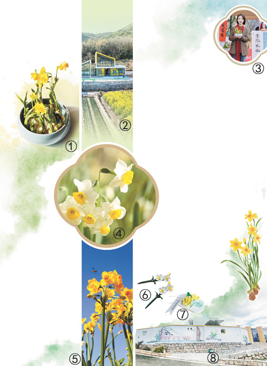 图⑧:桃花镇水仙花种植基地旁,水仙花墙绘扮靓农房。惠 涛摄