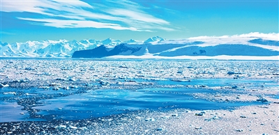 南极罗斯冰架与维多利亚地间的零星冰间湖。张婉茹摄