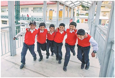 秘鲁拉斯邦巴斯铜矿建造的新富埃拉班巴社区教育综合体内的当地学生。 |