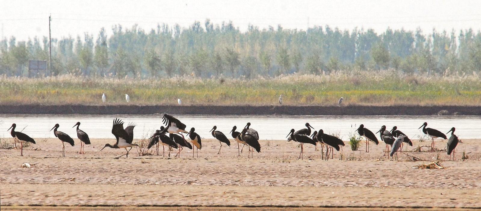 银川丰富的湿地资源和良好的生态环境,为黑鹳提供了理想的停歇和栖息场所。(拍摄于宁夏黄沙古渡国家湿地公园)