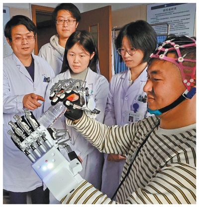 河北秦皇岛,脑机接口科研团队进行脑控机械手系统调试。 |
