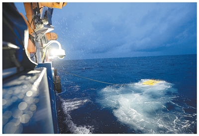 科研人员对6000米级深海无人遥控潜水器“海琴”号进行海试。 |