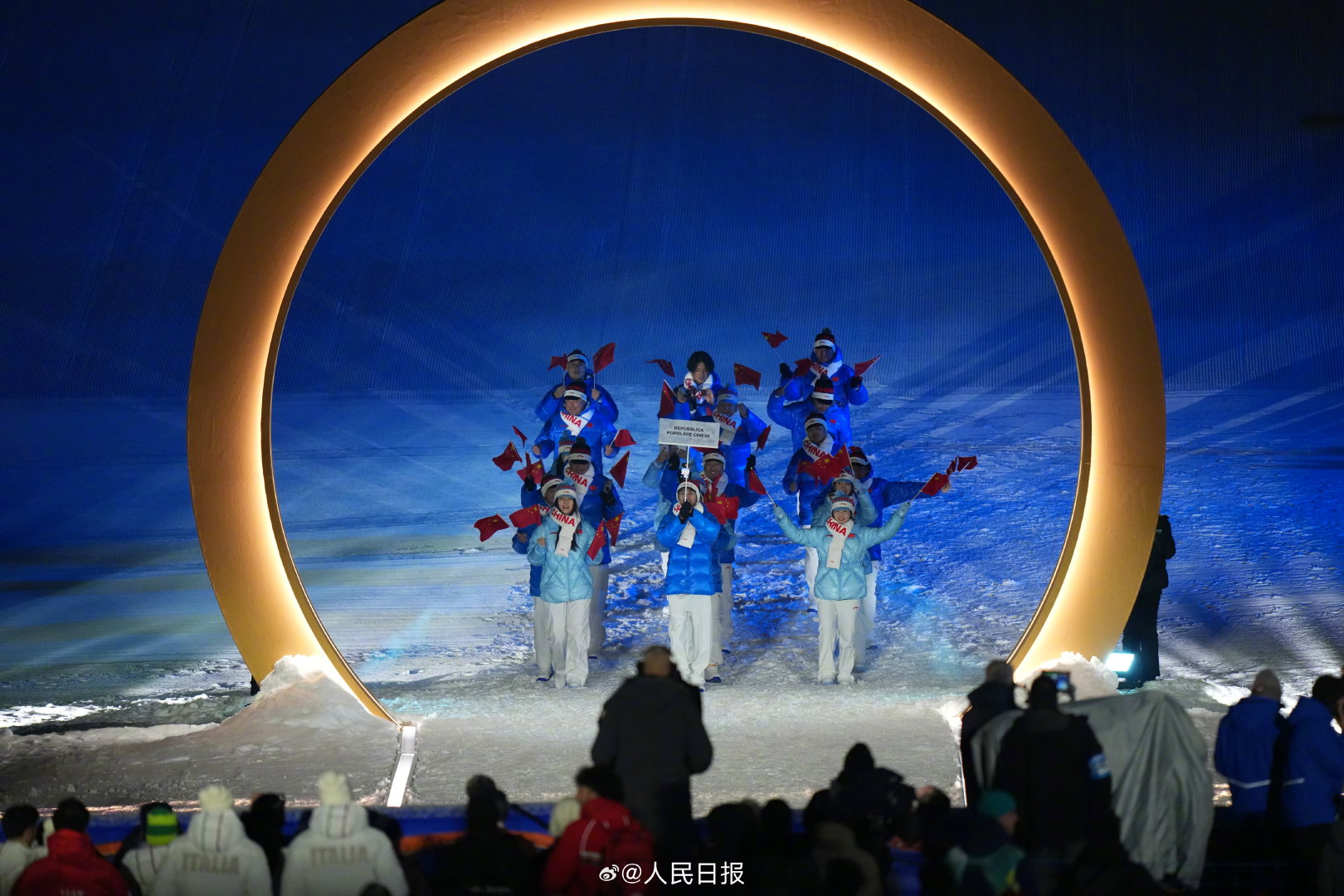 中国代表团入场!五星红旗闪耀米兰冬奥,为中国队加油!