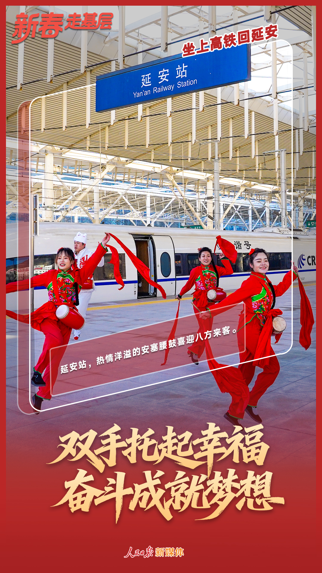 一个小时,很快。伴随着《山丹丹开花红艳艳》的旋律,列车到站提示音响起,蓝格莹莹的天空下,厚重崭新的延安城、火红热闹的中国年,就在眼前……