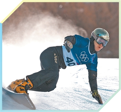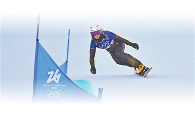 中国队选手白欣卉在单板滑雪女子平行大回转预赛中。