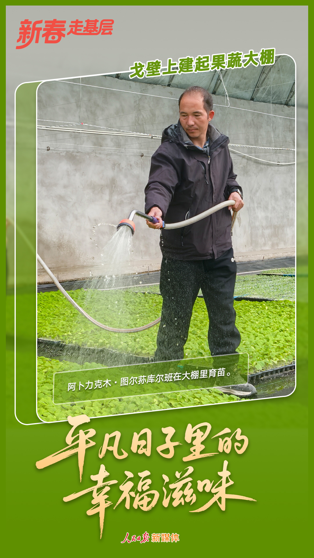 新疆和田地区墨玉县阔依其乡艾热恰克村,冬日虽寒,但在温室大棚里的阿卜力克木·图尔荪库尔班却穿着单薄的衣裳,鼻尖还沁出了汗珠。