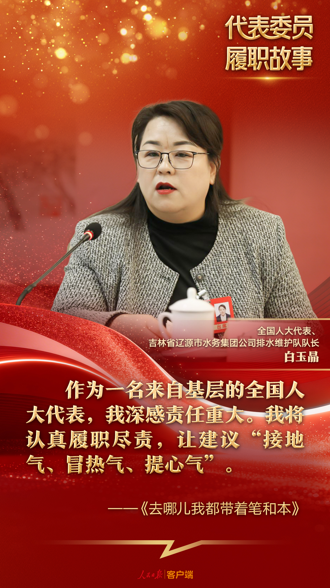 “去哪儿我都带着笔和本。”白玉晶说,“只有真心倾听群众呼声、用心为群众办实事,才对得起全国人大代表这个身份。”
