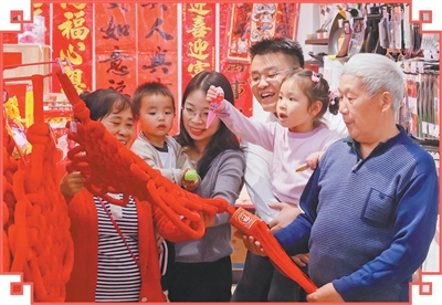 2月8日,河南省信阳市固始县的集市上,年味已浓。带着5岁的孙女代辰曦,代善中仔细挑选窗花、春联:“把‘福’贴到咱家门上,新年就迎到家里喽!”