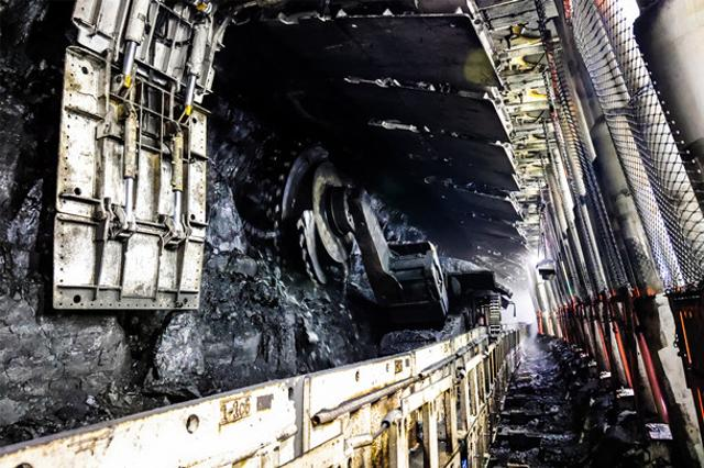 神东大柳塔煤矿综采五队工作面智能化采煤机正在井下高效作业。