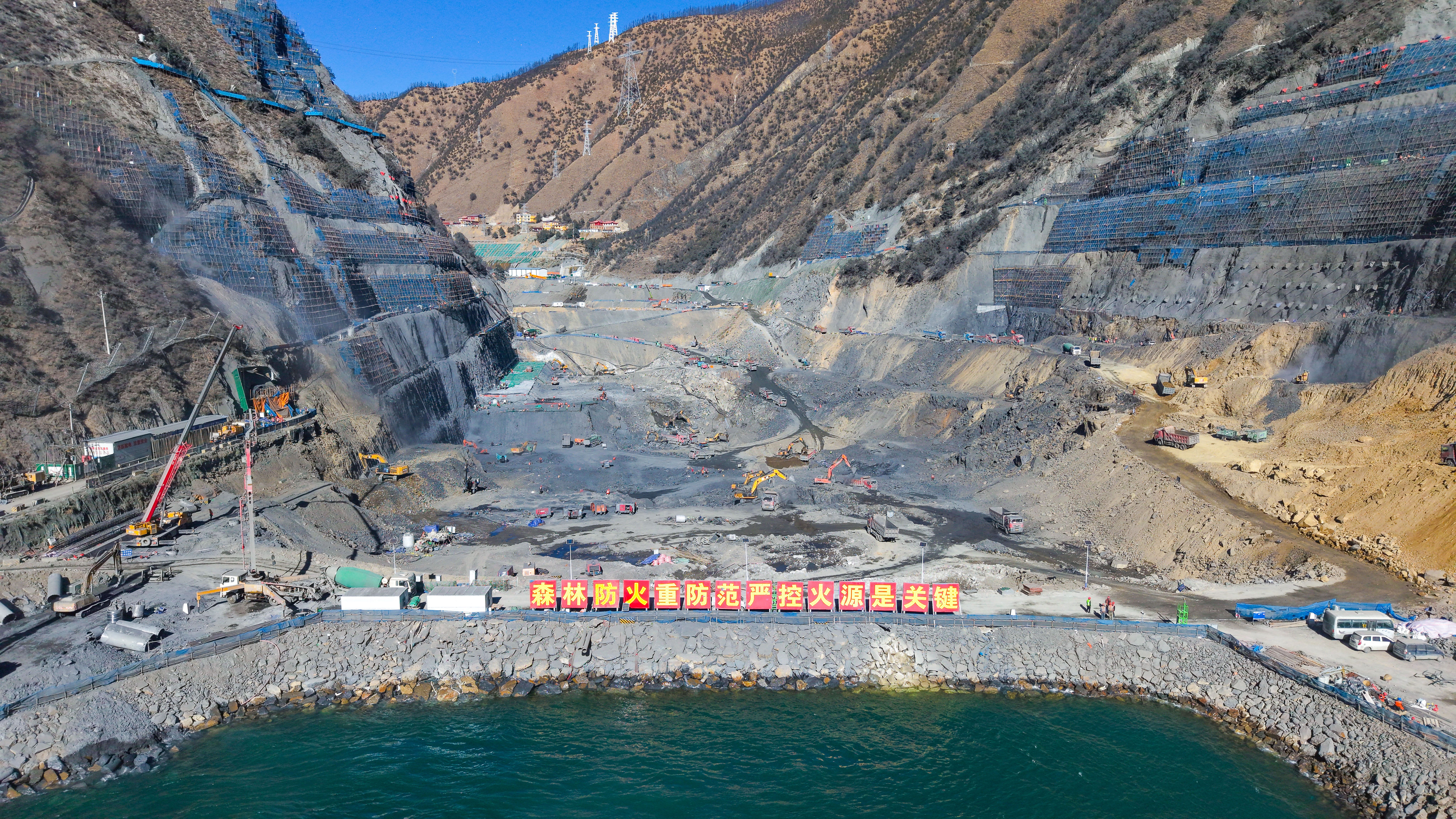 在雅砻江流域另一座抽水蓄能电站——两河口混合式抽水蓄能电站建设现场,500余名建设者奋战一线,抢抓枯水期施工“黄金窗口”,24小时轮班作业,投入首台国产化无人智能凿岩机,奋力推进电站地下厂房开挖,施工效率提升30%以上。在其下游的牙根一级水电站,工地上机械轰鸣,600多名建设者推进边坡开挖支护、导流明渠浇筑等多项施工,春节期间还要开展大坝混凝土浇筑。“今年是大坝主体工程施工的高峰期,更是决定电站2028年投产发电的关键一年。”雅砻江公司牙根一级建设管理局副局长吴火兵介绍。他们每天开碰头会,随时解决施工中出现的问题。