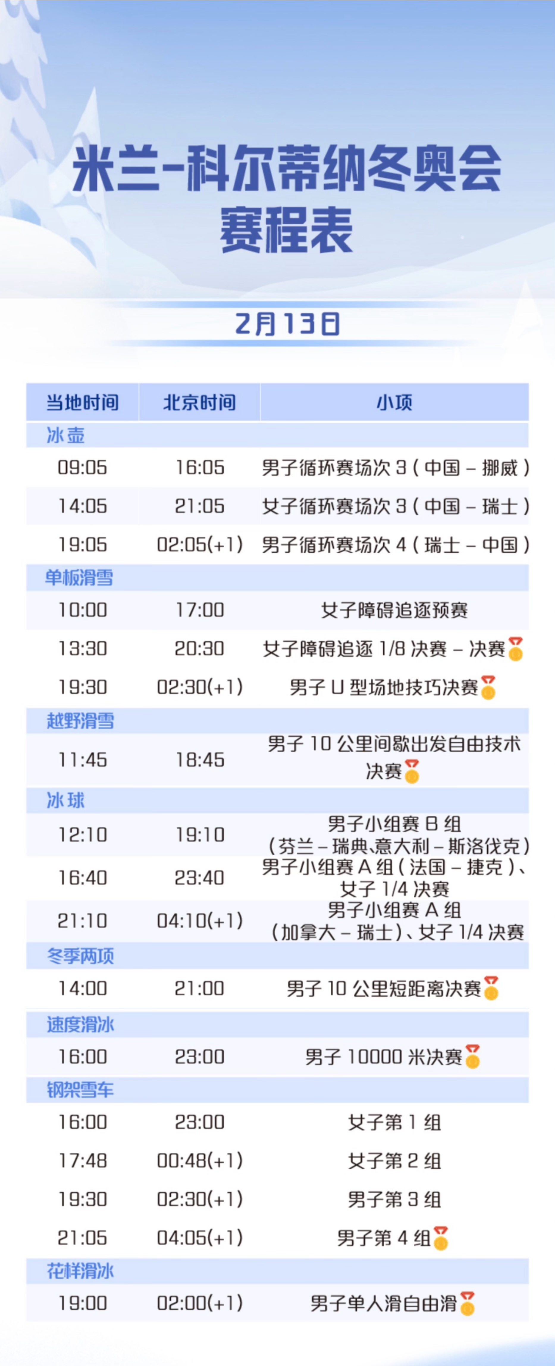 为冰雪健儿加油!米兰冬奥会今日赛程速览→