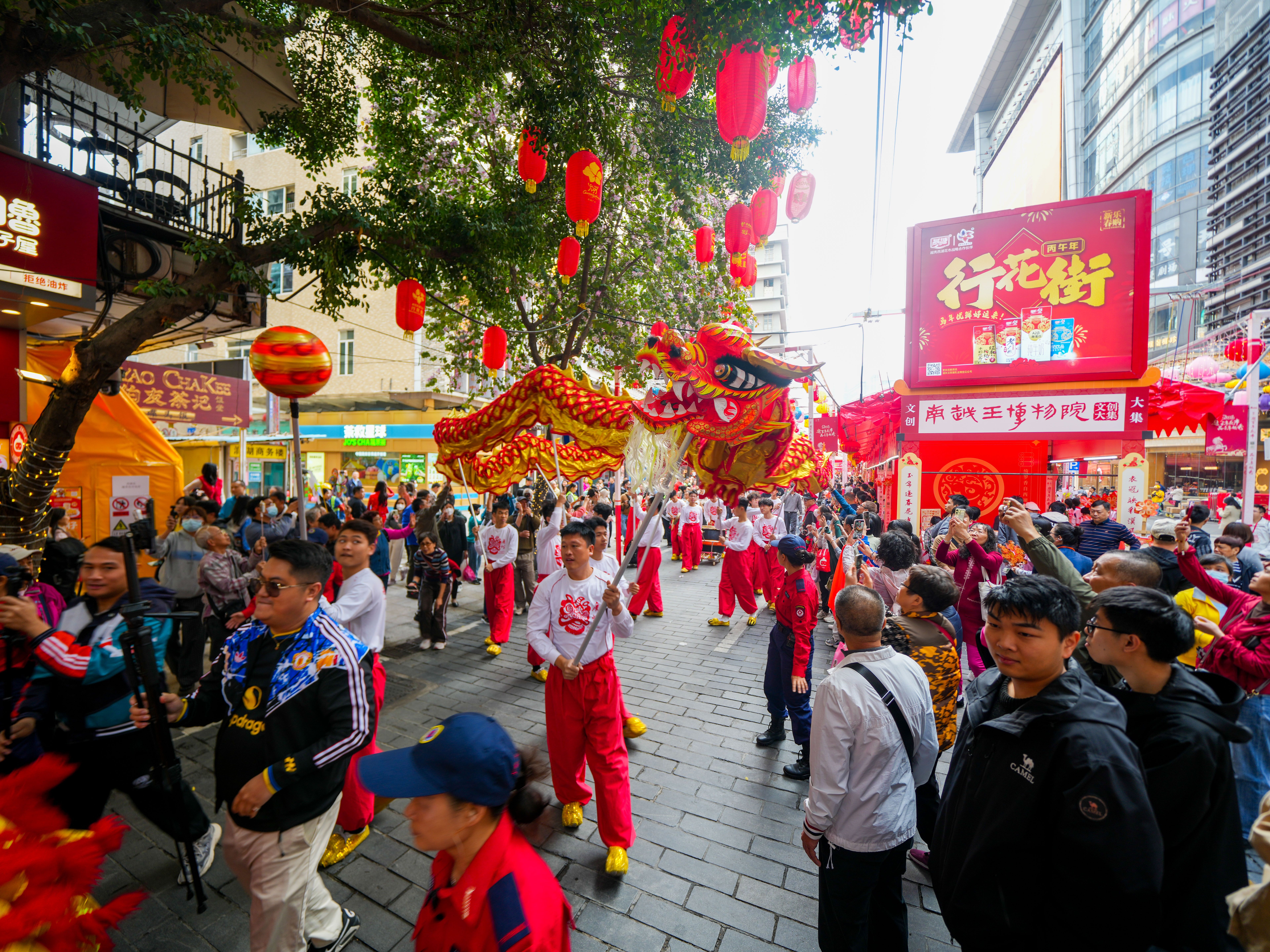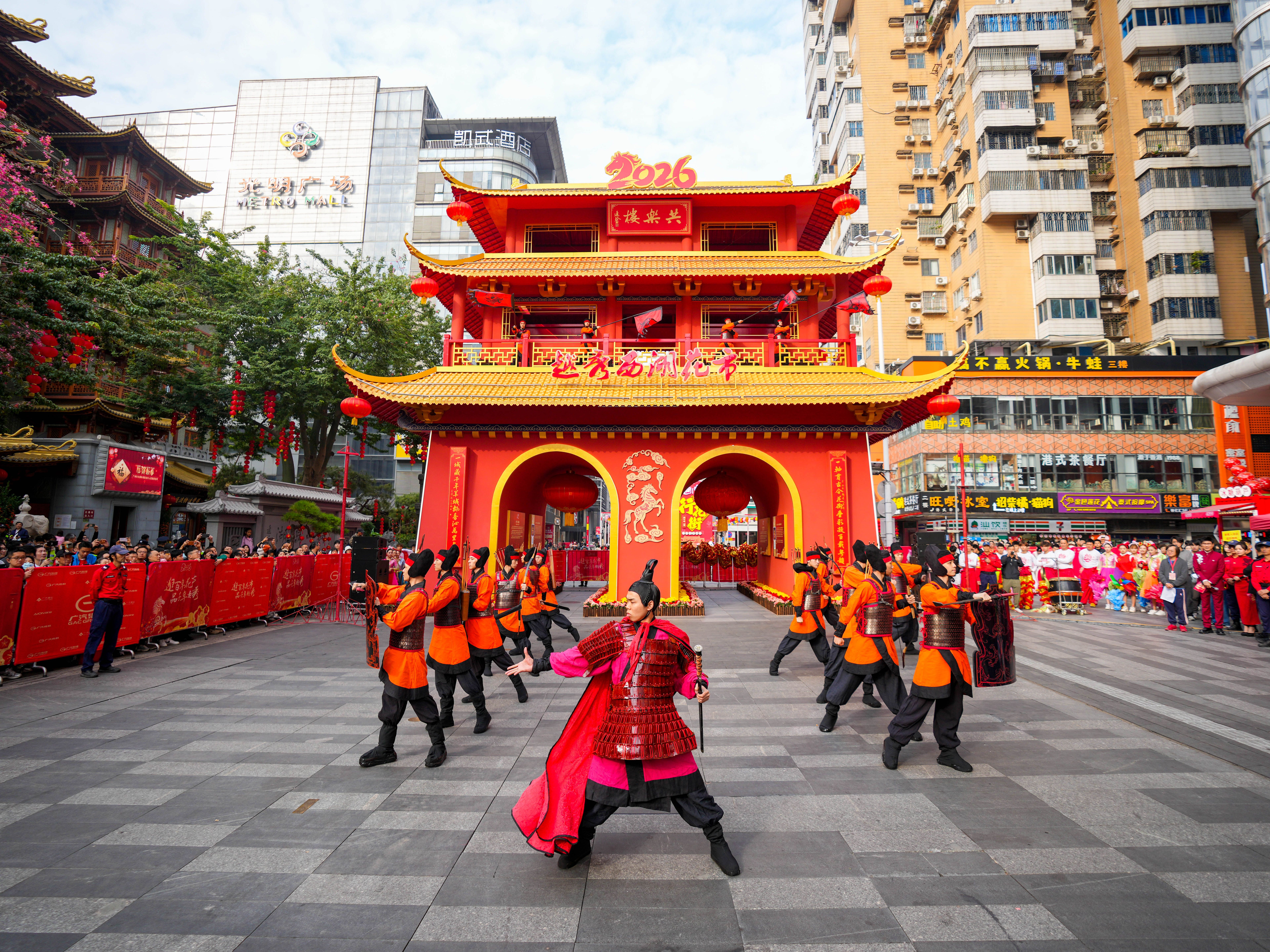 2月13日上午,2026年越秀西湖花市在西湖路广百广场隆重举行。晨曦微露,瑞狮跃动,喜气盈门,一场传统的醒狮表演开启了2026年越秀西湖花市的帷幕,也宣告广州传统迎春花市全面开市。今年,广州市市场监管局联合越秀区政府、广州日报报业集团等单位,策划了全市统一的迎春花市开市仪式,持续擦亮“广州过年,花城看花”城市IP,为城市高质量发展注入文化赋能和消费提振的双动能,让芬芳与年味溢满羊城。