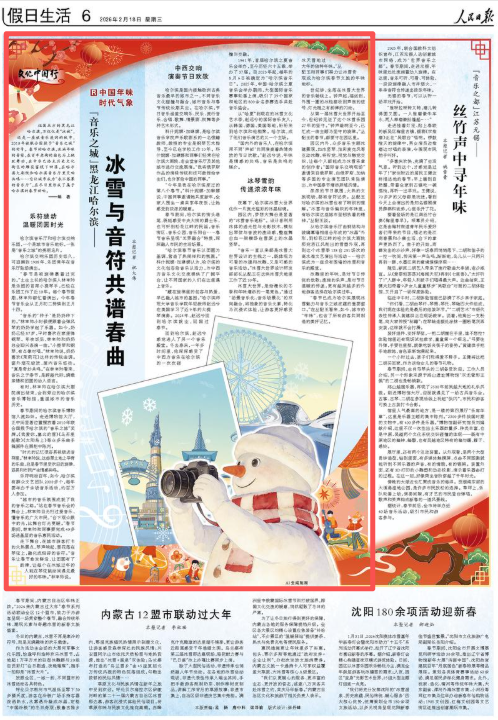 浓浓的节日氛围,火热的文旅现场,都被音符记录。丛配玉对哈尔滨的冰雪也有了特别的理解。“冰雪与音乐编织的年味里,有哈尔滨这座城市坚韧执着的精神。”丛配玉说。