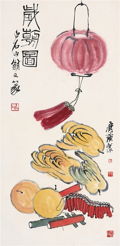 中国画《岁朝图》,作者齐白石,北京画院藏。