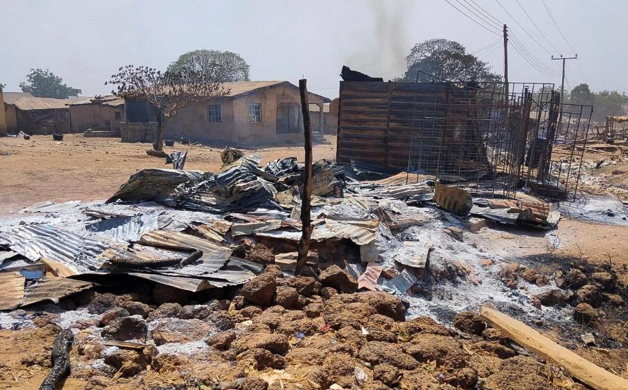 △尼日利亚夸拉州恐袭事件发生后,当地在恐袭事件中遭焚烧的村庄建筑。