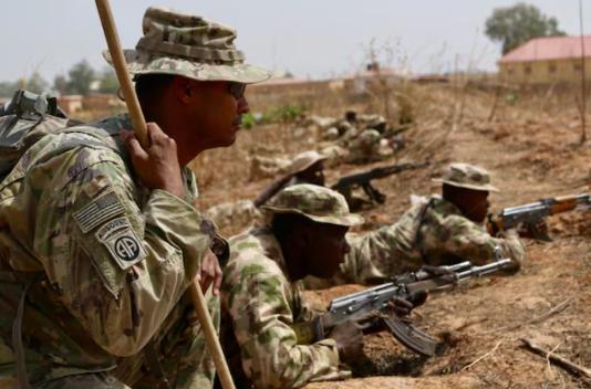 △一名美军士兵正在训练尼日利亚士兵(资料图)